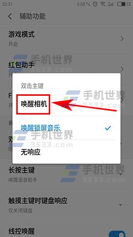 2)接着找到【双击主键】,然后设置为【唤醒相机】,这样在任何界面双击主键都可以快速开启相机了。(如下图)