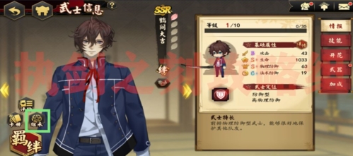 ▲▲小可爱们要注意了,继承后,原SR鹤间大吉的等级、境界、武器均会继承到现SSR鹤间大吉身上。划重点、敲黑板,但是技能等级在这里是不会被继承的,也就是说,想利用低稀有度武士培养至6级再继承到高稀有度身上技能也会直接6级,这种想法是不现实的。