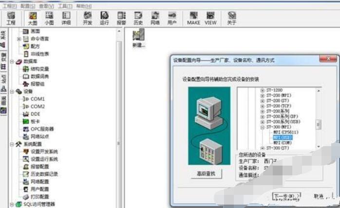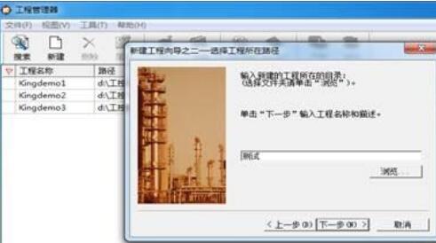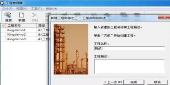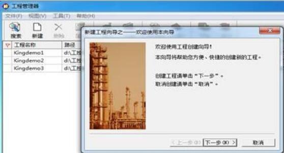 1、在桌面上找到组态王图标并双击打开点击新建创建新的工程,点击下一步。