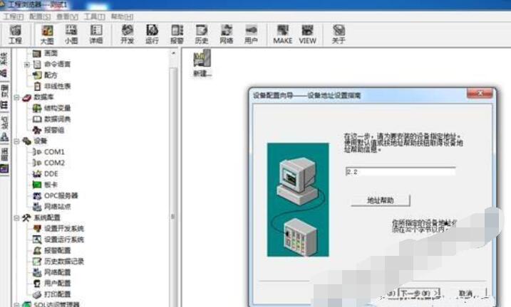 4、设置设备地址:2.2 是指PLC在MPI总线上的地址为2,PLC 的CPU占用的槽号为2所以此处填写2.2,不同型号的PLC地址的设置不同,具体参考地址帮助。点击下一步直至完成设备创建。