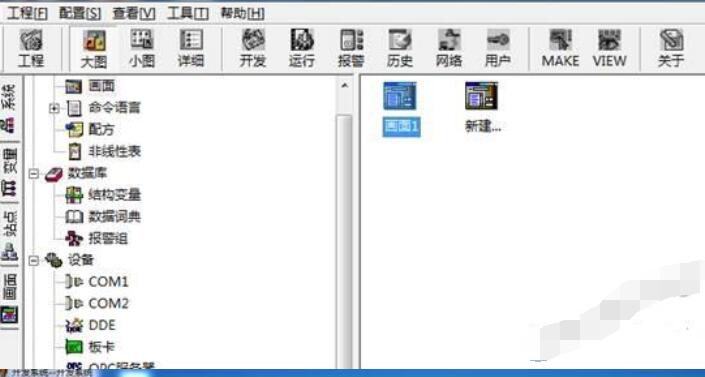 二、双击新建建立新的工程画面命名为“画面1”点击确认完成画面创建。