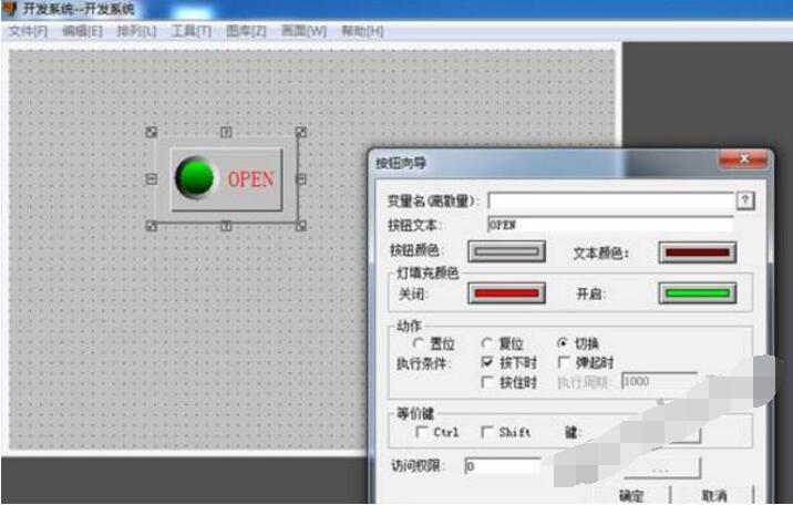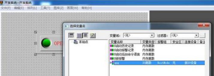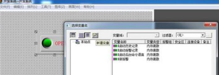 1、双击打开刚才建立好的“画面1”,并打开图库管理器选择按钮新型关联变量。