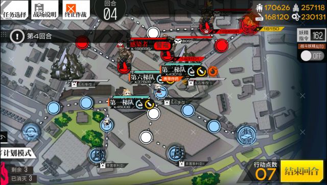 第一回合:左侧AR队前进2格,右侧AR队前进1格,左侧下斩杀队前进1格