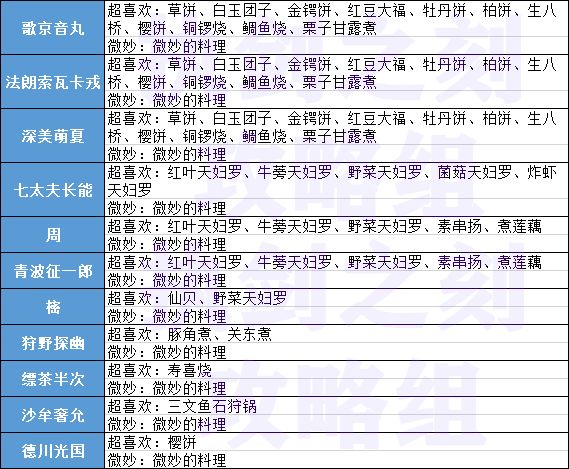 #总览#(v.1.0 料理的喜好度根据版本可能会有调整哦,请以实际版本为主)