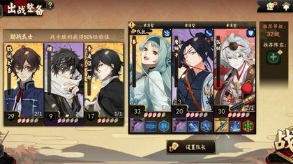 【说明】该攻略中搭配并未考虑入稀有度,仅以武士单人为核心,尝试进行搭配。该攻略推荐阵容仅供参考,小伙伴们可以根据武士技能进行更多的搭配尝试(如师生三人组、天狗CP等)。
