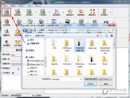 1、首先需要先添加想要作为视频背景的图片文件,友锋电子相册制作几乎支持所有类型的图像文件,你可以自己选择合适的图片选中并打开,如下图所示:
