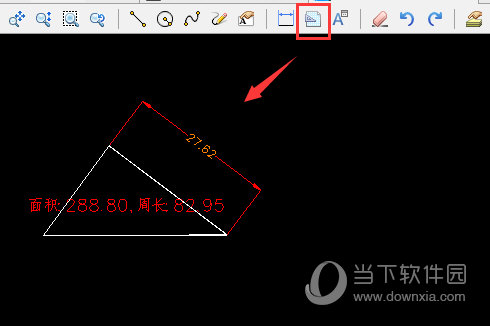 5、最后还可以测量面积哦,执行“测量面积”命令,依次选择三角形的每个角,按回车键,就可以得到三角形的面积了。