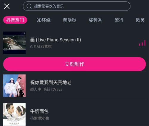 3、在里面找到自己想要加入的音乐,选择它再点击立即制作;