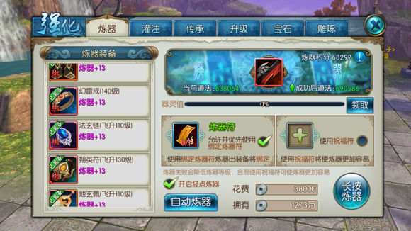 诛仙手游中你还在为装备爆了生气弃坑吗?本人发现了一个装备上13的路子,供各位参考,直接进入正题。一起来看看炼器上13实用教程。
