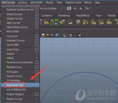 6、点击edit curves选项在其下拉菜单里找到add points tool选项