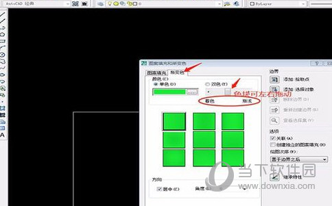 5、选择好颜色之后,就可以在图上填充颜色了。但渐变色窗口的右边有一个添加拾取点的的按钮,点击选择矩形按回车键,然后在渐变色窗口的下面按确定键。