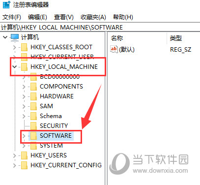 5、然后我们在主根目录点击-HKEY LOCAL MACHINE文件夹,并在该文件里找到 software文件夹并打开,如下图所示,有的software是大写的,所以注意一下即可。