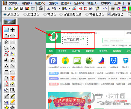 2、接着在左边的工具栏中选择合适的选框工具,当然如果你的标志是同一种颜色的,则可以利用魔棒工具进行选中,接着选中想要放大的Logo标志,之后将会,如下图所示: