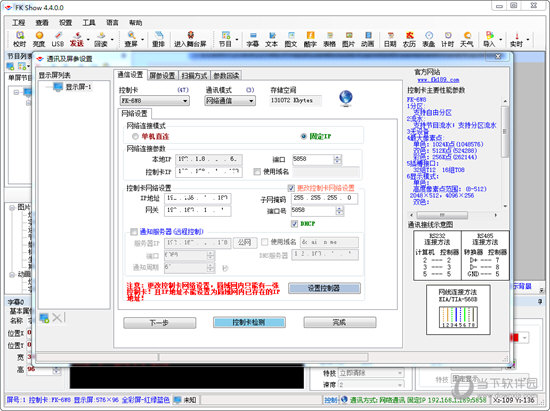 工程创建完后,首先要将控制卡跟Fk Show软件连接起来,才可以进行后续的屏参设置,节目发送等操作。根据用户选择的控制卡和FK SHOW软件通讯方式的不同,控制卡的连接方式也不同。