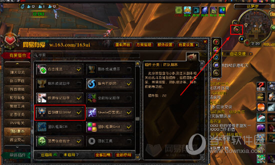 1、直接点击右上方地图旁边的“网易有爱”功能选项,弹出网易有爱的设置界面后,在左边的栏目汇总点击“团队副本”选项,接着可以看到其中的“首领模块DBM”功能,此功能就可以帮助我们调整提示音,如下图所示: