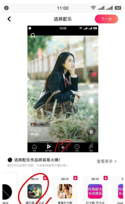 4、然后点击下面的卡点的配乐,选择一款适合自己的。