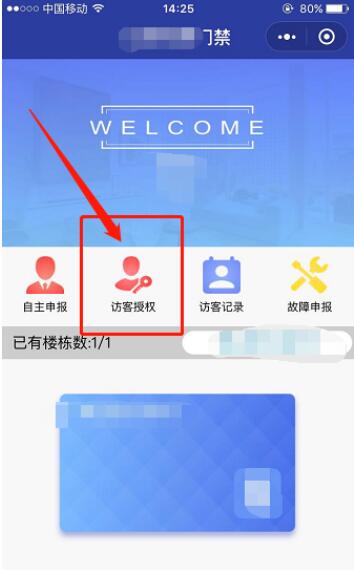 2、然后进入门禁卡首页面,点击【访客授权】;