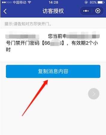4、接着把开门密码复制给朋友就可以了。