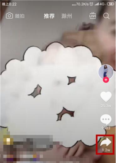 1、首先打开一个打喷嚏变熊猫的视频,然后点击右下角的【分享】按钮;