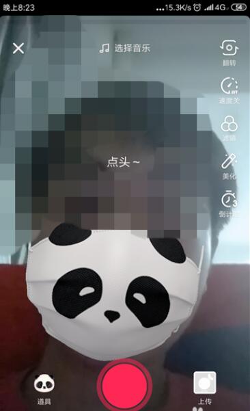 5、然后就会出现熊猫特效了,然后可以【录制】视频了。
