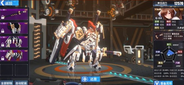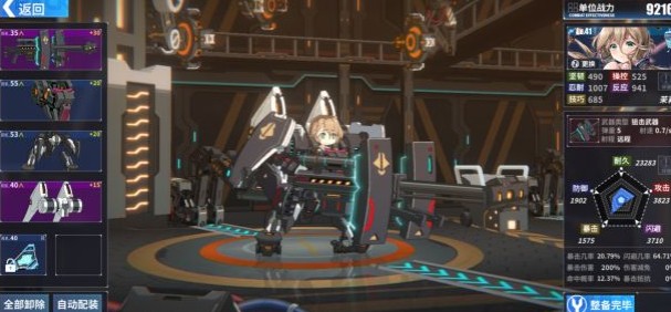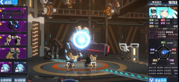 发现之后我就现抬了个茉莉上阵,堆闪避吃炮车的攻击来保护诺娃,装备都是随意拼凑的。