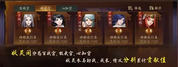 其中,百战宫、心知官分为累计贡献与周贡献,周贡献将记录大人每周内的互动情况,周贡献将于每周一正午12时开始计算,上周的数据将会清零。