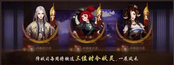 降妖司每周将挑选三位时令妖灵,大人可多加关注。本次时令妖灵为:绮罗、摩云、芒麦。