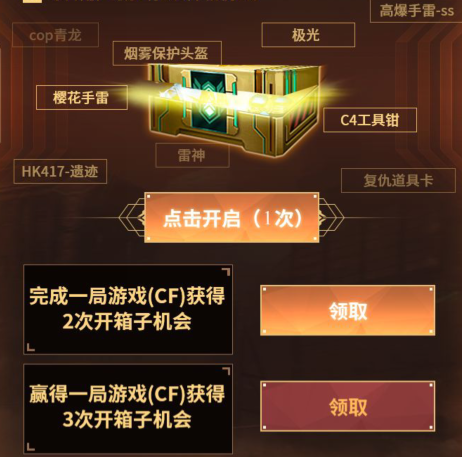 完成一局游戏(CF)获得2次开箱子机会