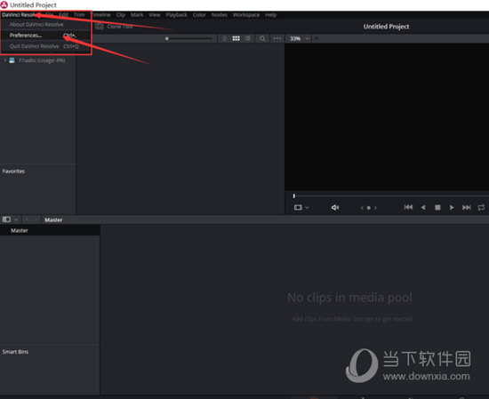 1、首先需要先进入到软件的主界面中,点击左上角的DaVinci Resolve按钮,在弹出的下拉列表中,如下图所示: