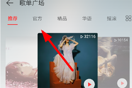 2、进入到歌单广场;界面之后,我们屏幕上面功能列表中的官方;频道,这样就可以了。
