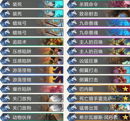 女王猎是非常看对手卡组的一套慢速猎人,但是如果胡起来4费巴内斯亚煞极也是很不得了。但是鉴于目前狂野带游荡恶鬼的人越来越多,其实装死也可以换了。