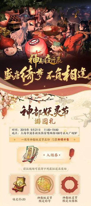 游园礼包每份售价98元,包含21日的入场资格、舞台活动抽奖资格和游戏礼包等多重福利(游戏礼包内含唤灵符x20、神都妖灵节限定称号和限定头像框)。