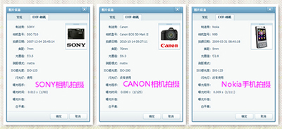 很多看图软件都可以查阅图片的EXIF信息,美图看看有何独到之处呢?原来美图看看有智能设备匹配功能,目前能匹配800多种不同品牌的相机和手机,在“图片信息”窗口中采用图文并茂的形式显示拍摄该图片的设备和各种参数,EXIF信息一目了然(如图)。