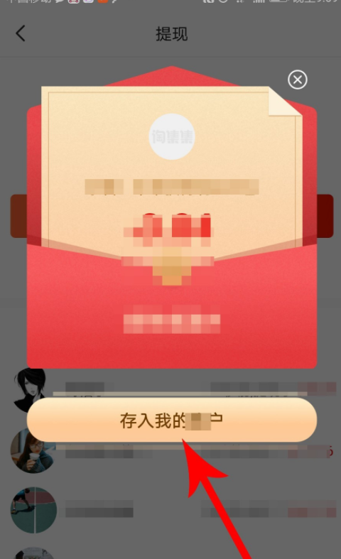 3、完成购物后,淘集集会给您一个红包,点击【存入我的账户】;