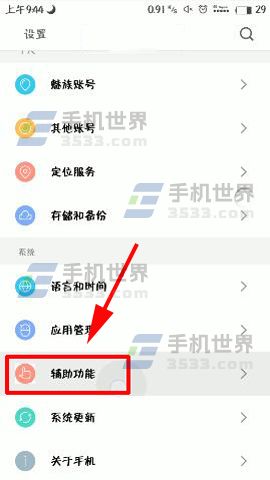 1)打开手机点击进入【设置】菜单,进入到菜单列表后滑动屏幕找到【辅助功能】选项点击进去。(如下图)