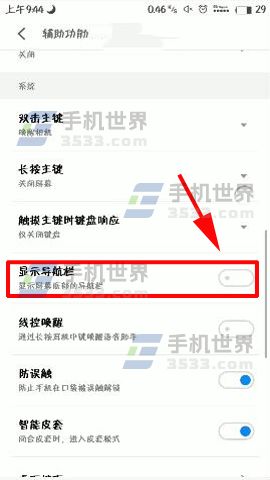 2)最后来到设置功能页面后点击【显示导航栏】旁边的按钮显示灰色即代表关闭成功了。(如下图)