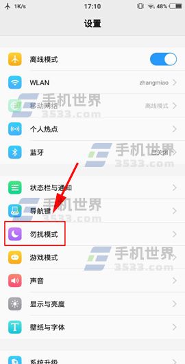 1)打开手机点击进入【设置】菜单,进入到菜单列表后滑动屏幕找到【勿扰模式】点击进去。(如下图)
