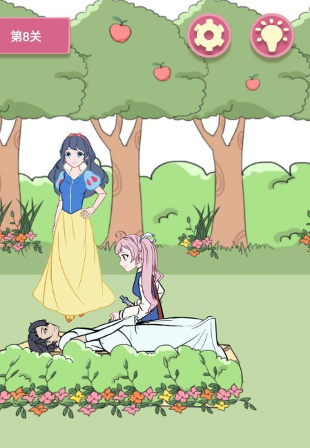 1、玩家需要先拿到树上的毒苹果给男主角,