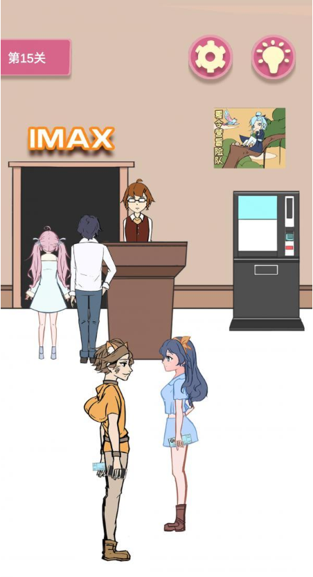 2、之后点击墙上的海报拿到蓝票,给另一个女孩。
