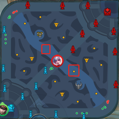 前4分钟的兵线中,我们为对抗路的法师小兵增加了回复Buff,为发育路的法师小兵增加了额外金币,再加上边路的本来就存在的河道蜥蜴(本次刷新为河道之灵),这导致地图资源有些过于倾斜到边路了。所以这次我们在中路河道附近新增一只河道之灵。