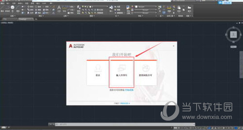 8、打开之后进入到AutoCAD2018的界面,会提示我们选择许可类型,也就是激活的意思,点击中间的输入序列号;。