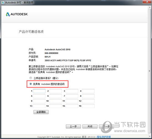 10、输入AutoCAD2018的安装产品序列号和密钥,666-69696969,001J1。