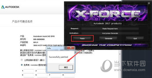 14、我们开始激活AutoCAD2018,1、把申请号粘贴到注册机,2、点击生成激活码,3、把生成的激活码粘贴到注册界面,4、点击下一步。