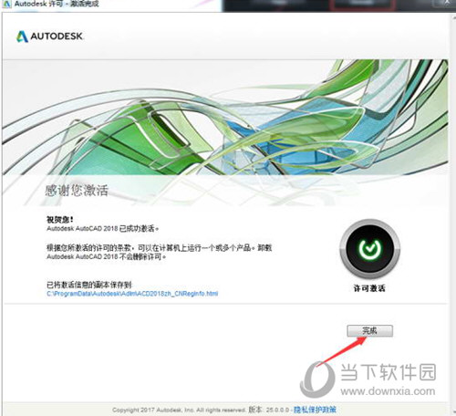 5、等待20分钟左右AutoCAD2018官方中文版64位就安装完成了,点击完成。