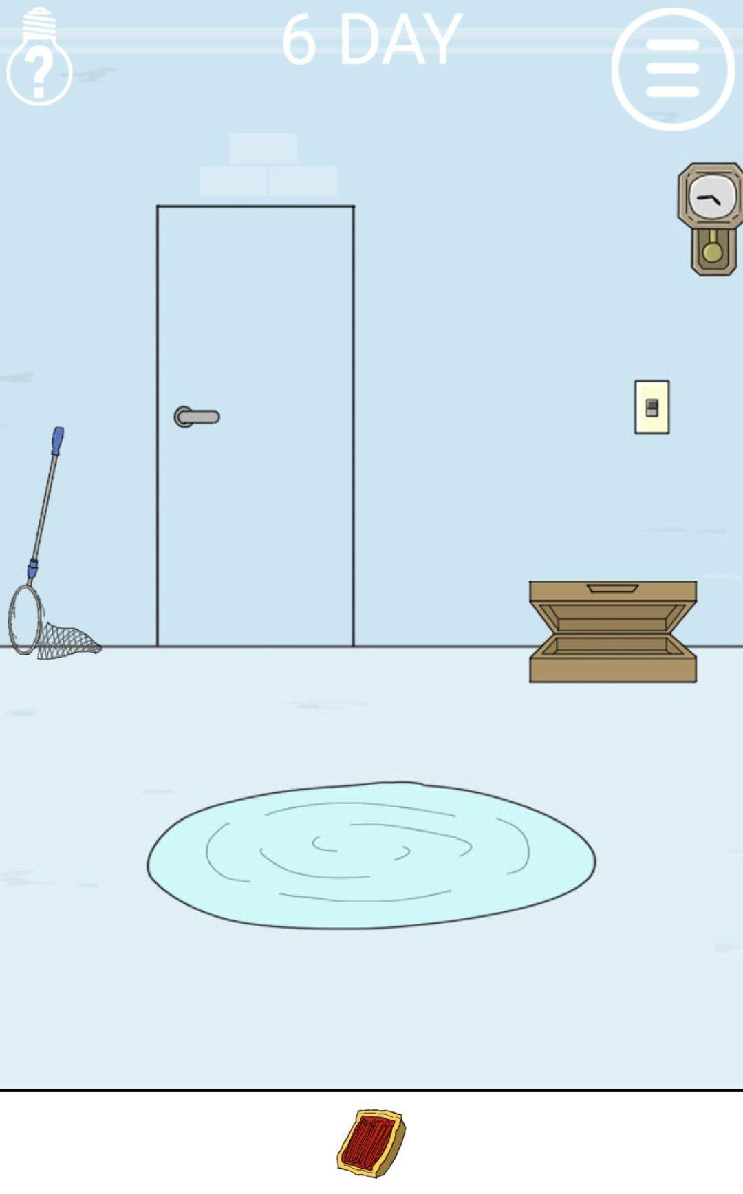 右边有个盒子,拿出剪刀,然后把网剪了。把辣条放在水池中,过关