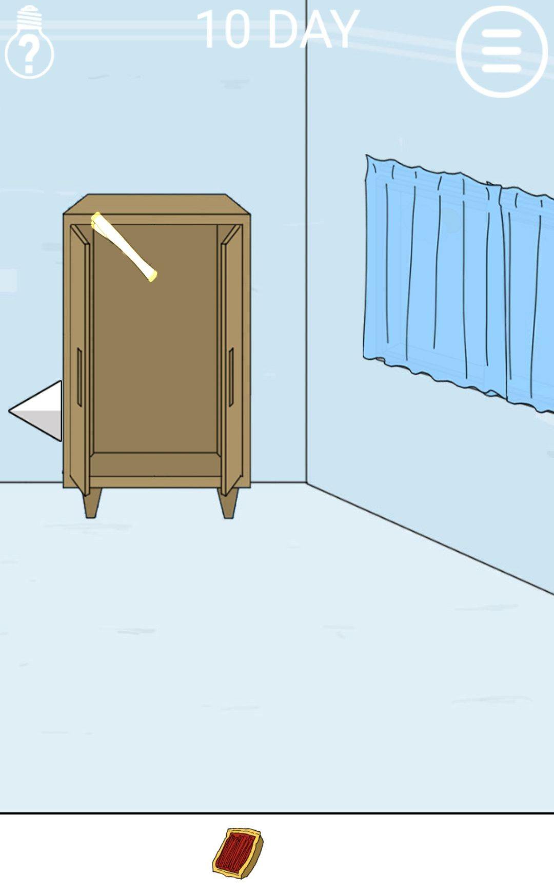 点击右边柜子海报,然后把柜子拉开,放入海报海报这个发黄光的位置可以放入,辣条,关上柜子门。过关