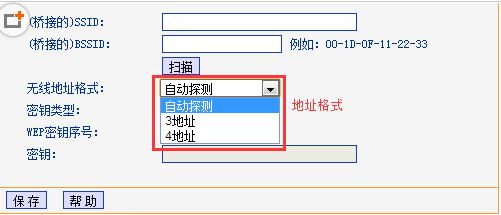 副路由器设置桥接主路由器时,在副路由器界面中选择无线地址格式。此方法仅适用于传统界面或新界面路由器,云路由器无法选择地址格式。