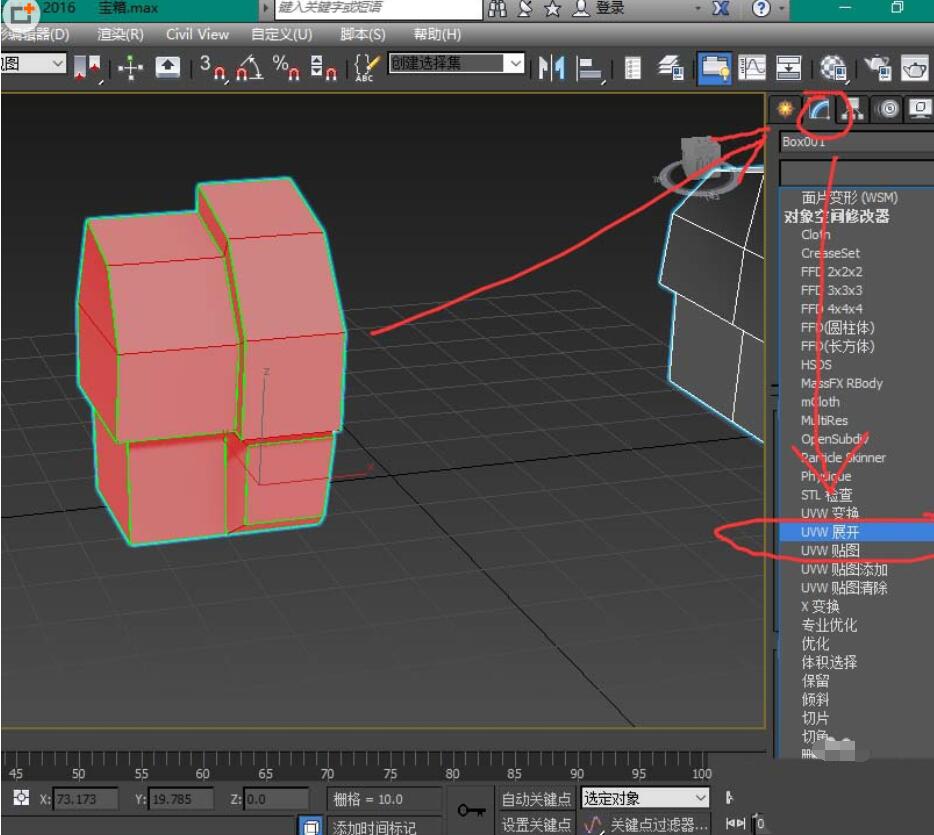 1、首先打开3Ds MAX软件,添加一个uvw展开命令