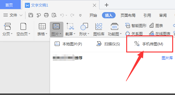 2、然后我们就可以在图片的选项栏里面选择【手机传图】;