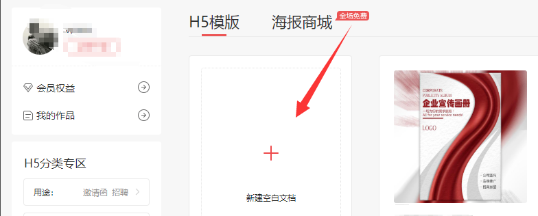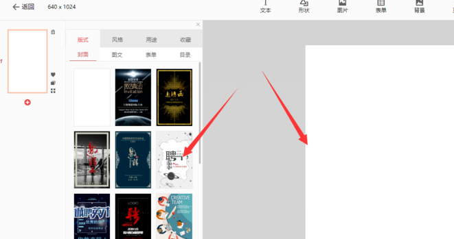 4、选择创建后,得到如图画布样式,左侧模板中,可以点击选择模板创建;